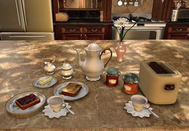 • toast, coffee, and jam — touch coffee cup and click Yes for the cup to attach directly to your hand.